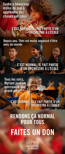 L'association Orchestre à l’École œuvre au développement des orchestres en milieu scolaire. Au sein de l'orchestre, la musique va changer leur vie !