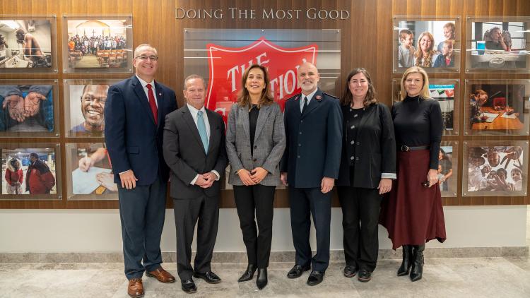 La Fondation CMA CGM a annoncé le renouvellement de son initiative “Giving Across North America”, pour la sixième année consécutive, en partenariat avec L’Armée du Salut. Le 19 novembre, Tanya Saadé Zeenny, Présidente de la Fondation CMA CGM, a rencontré le Colonel James Betts, Secrétaire général national de l’Armée du Salut, Meghan Foley, Directrice nationale des services d’urgence en cas de catastrophe, et Jaime Joswick, Directrice nationale des relations institutionnelles, afin de renouveler officiellement leur partenariat pour venir en aide aux personnes et familles vulnérables dans cinq villes américaines. Cette édition, soutenue par 200 collaborateurs du Groupe CMA CGM, permettra la distribution de plus de 500 000 repas (produits frais, denrées alimentaires et repas chauds) aux foyers faisant face à la précarité alimentaire.